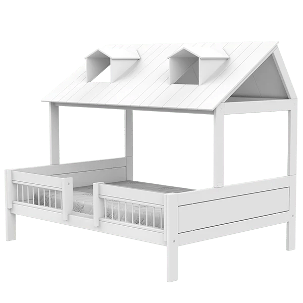A super cool beach-style house bed! This house bed will feel just like home. Designed with a roof and windows, it creates a cozy atmosphere in any children's room.