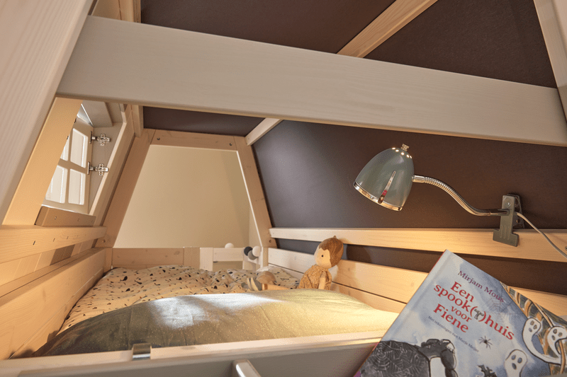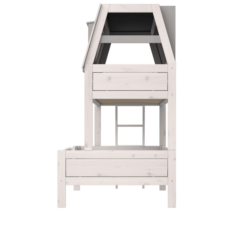 The lower bed is made wider, providing extra space for relaxation or overnight guests. Let the fun begin! The lower bed measures 120x200 cm, while the upper bed is 90x200 cm.
