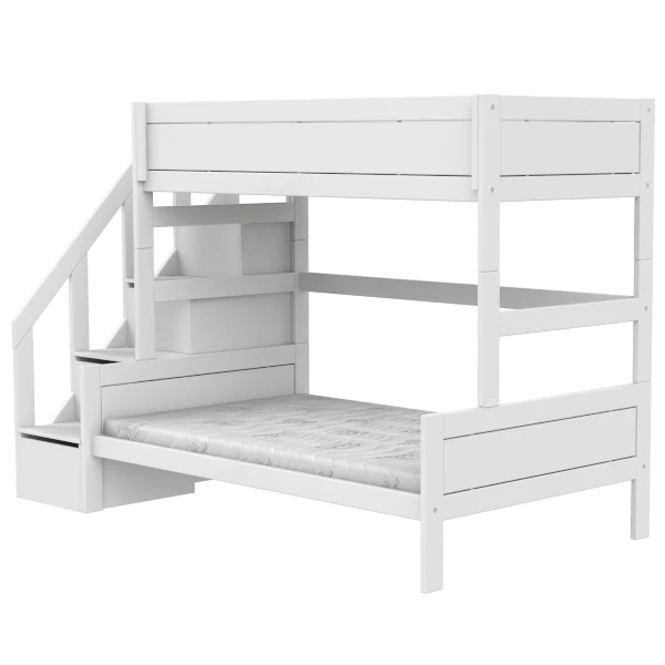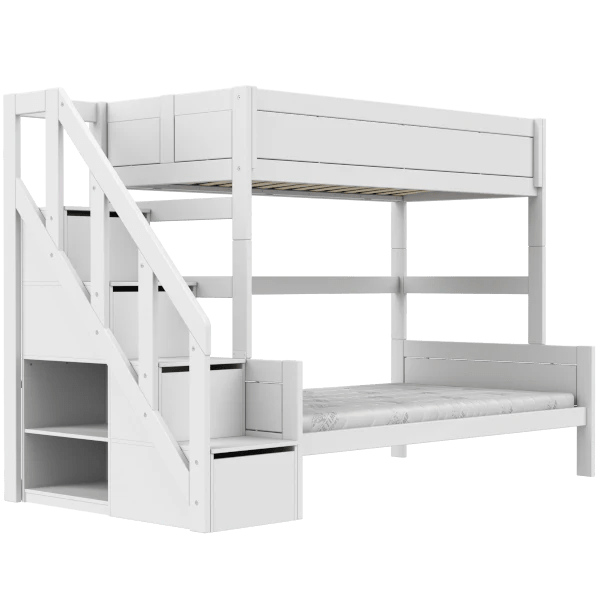 Let functionality, design, and practical storage go hand in hand - or should we say step by step. This fun, practical, and stylish bunk bed solution saves you plenty of space for even more fun while providing a safe climb to the top bunk.