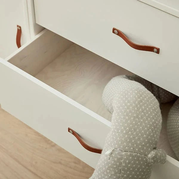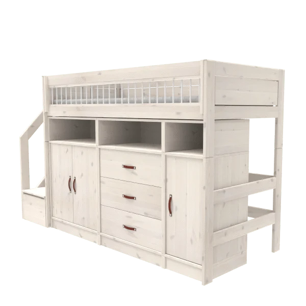 The white lacquered children's furniture from LIFETIME Kidsroom is made of solid pine wood without knots to avoid the typical discolouration and unevenness caused by knots. The surface is treated with environmentally friendly water-based white furniture lacquer and hardened with UV light, which ensures an easy-to-clean and resistant surface. For our white lacquered articles, we use MDF for fronts, fillings, doors and drawer fronts. Due to the use of different materials, there may be slight differences in colour and pattern.
