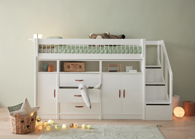 You can avoid buying an extra wardrobe and your child can take out their clothes themselves, as all storage modules are the same height as the child.