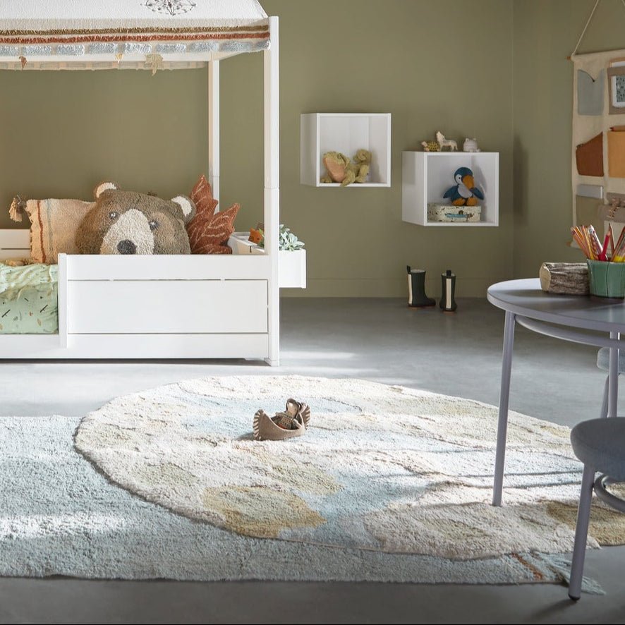 LIFETIME Kidsrooms is proud to present the Canoe Adventure collection in collaboration with Lorena Canals, the creator of washable eco-friendly and handmade products, where everything is made from organic cotton. This creates peace of mind for you and your child, who are in daily contact with the product, and the convenience of being able to wash without damage.