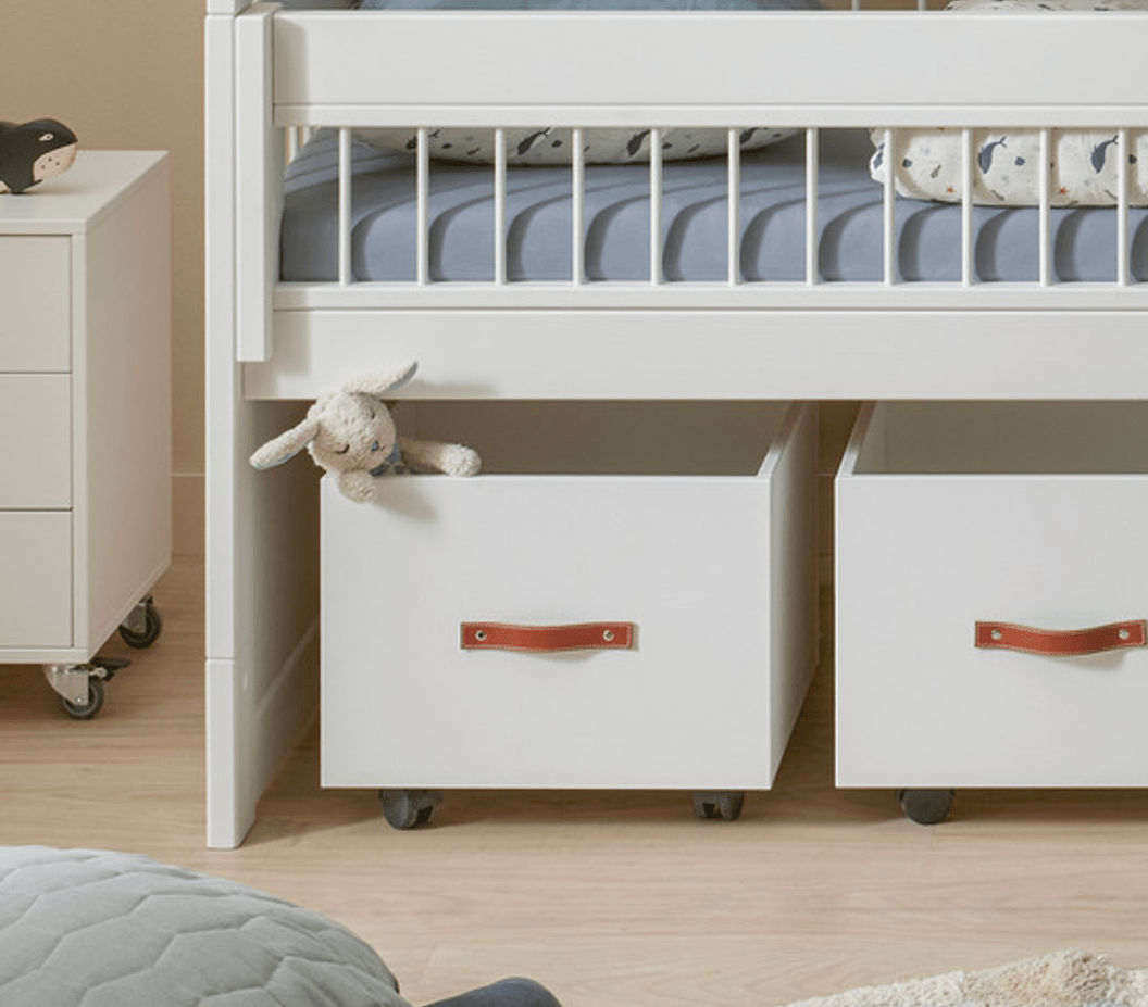 Lav en flot opbevaringskasse på hjul. Tilføj blot disse hjul til opbevaringskassen art. 6082. Så kan du nemt rulle legetøjet gennem rummet.