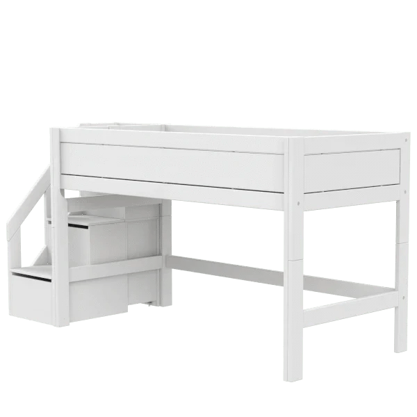 Halvhøj seng med trappe 128 cm