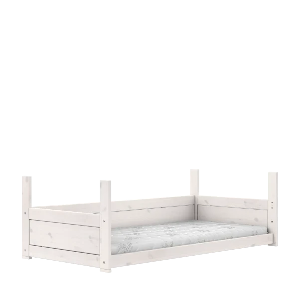 Denne seng kan vendes, så du både får en seng i gulvniveau og en almindelig seng med en frihøjde på 25 cm.