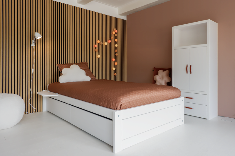 Du kan kombinere sengen med LIFETIME Original tilbehør eller tilføje skuffesættet art. 105-10 for at skabe et dedikeret opbevaringsrum og lukke rummet under sengen. LIFETIME Montessori sengen fås i hvid lak (-10), til madras mål 90x200 cm eller 120x200 cm.