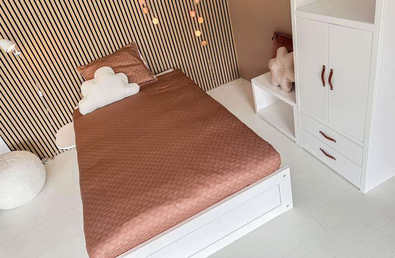 Når din lille opdagelsesrejsende vokser op, kan LIFETIME Montessori sengen samles igen til en smuk platformseng med et tidløst design. LIFETIME platformsengen er velegnet til børn, teenagere og endda voksne.