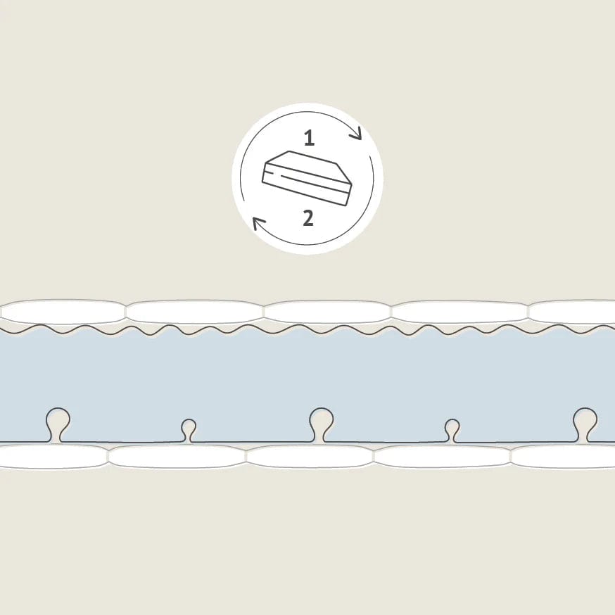 Kerne: 12 cm højkvalitets og punktelastisk koldskum med bølgekontursnit for en blød sovekomfort