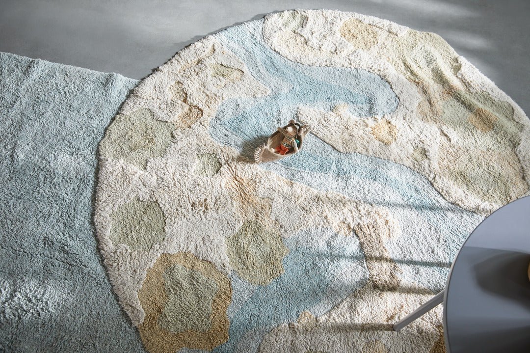 Dette smukke tufted landskabstæppe med legekano er perfekt til leg på gulvet.