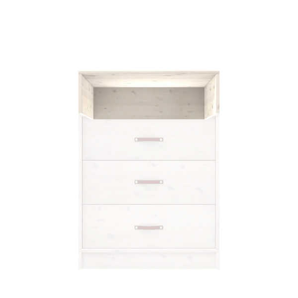 Die weiß lackierten Kindermöbel von LIFETIME Kidsroom bestehen aus massivem Kiefernholz ohne Äste, um die typische Verfärbung und Unebenheiten durch Äste zu vermeiden. Die Oberfläche ist mit umweltfreundlichem, wasserbasiertem weißem Möbellack behandelt und mit UV-Licht gehärtet, was eine leicht zu reinigende und widerstandsfähige Oberfläche gewährleistet. Für unsere weiß lackierten Artikel verwenden wir MDF für Fronten, Füllungen, Türen und Schubladenfronten. Durch die Verwendung unterschiedlicher Materialien kann es zu leichten Farb- und Musterabweichungen kommen.