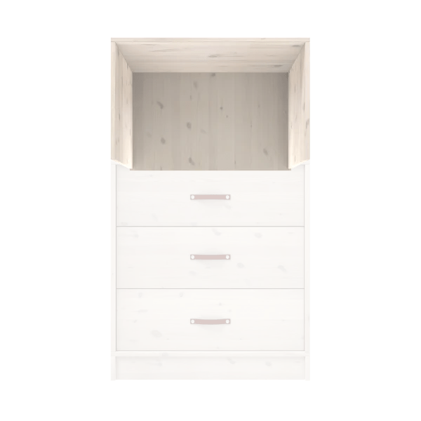 Die weiß lackierten Kindermöbel von LIFETIME Kidsroom bestehen aus massivem Kiefernholz ohne Äste, um die typische Verfärbung und Unebenheiten durch Äste zu vermeiden. Die Oberfläche ist mit umweltfreundlichem, wasserbasiertem weißem Möbellack behandelt und mit UV-Licht gehärtet, was eine leicht zu reinigende und widerstandsfähige Oberfläche gewährleistet. Für unsere weiß lackierten Artikel verwenden wir MDF für Fronten, Füllungen, Türen und Schubladenfronten. Durch die Verwendung unterschiedlicher Materialien kann es zu leichten Farb- und Musterabweichungen kommen.