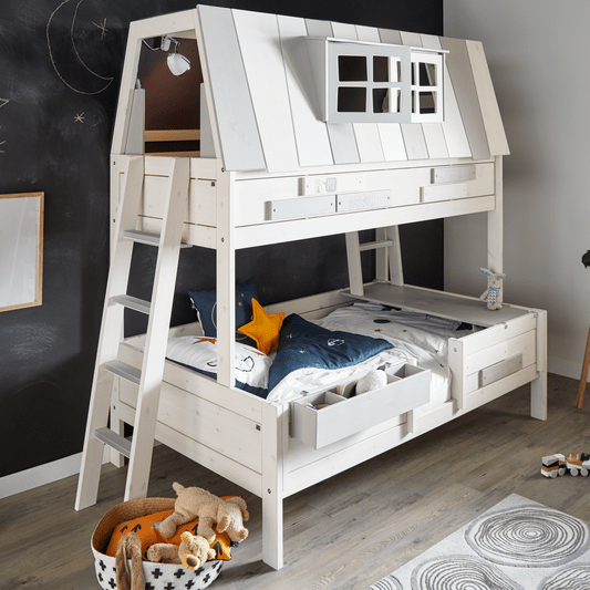 Das Etagenbett My Hangout ist ein tolles und originelles Hüttenbett oder Hausbett das zum Spielen und Schlafen einlädt.
