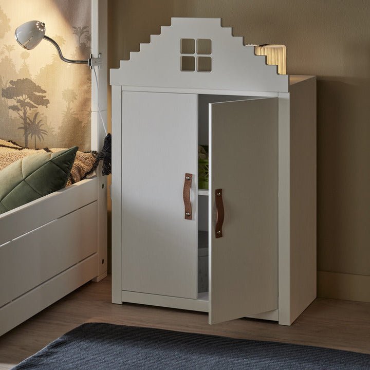 The white lacquered children's furniture from LIFETIME Kidsroom is made of solid pine wood without knots to avoid the typical discolouration and unevenness caused by knots. The surface is treated with environmentally friendly water-based white furniture lacquer and hardened with UV light, which ensures an easy-to-clean and resistant surface. For our white lacquered articles, we use MDF for fronts, fillings, doors and drawer fronts. Due to the use of different materials, there may be slight differences in colour and pattern.