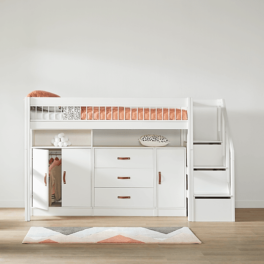 The staircase can be placed on both the left and right sides of the bed, giving you more options when decorating your child's room.