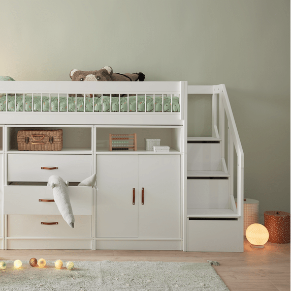 You can avoid buying an extra wardrobe and your child can take out their clothes themselves, as all storage modules are the same height as the child.