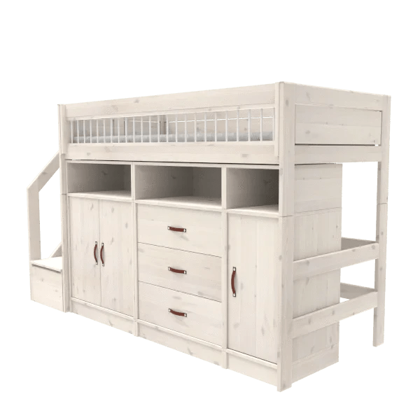 The white lacquered children's furniture from LIFETIME Kidsroom is made of solid pine wood without knots to avoid the typical discolouration and unevenness caused by knots. The surface is treated with environmentally friendly water-based white furniture lacquer and hardened with UV light, which ensures an easy-to-clean and resistant surface. For our white lacquered articles, we use MDF for fronts, fillings, doors and drawer fronts. Due to the use of different materials, there may be slight differences in colour and pattern.