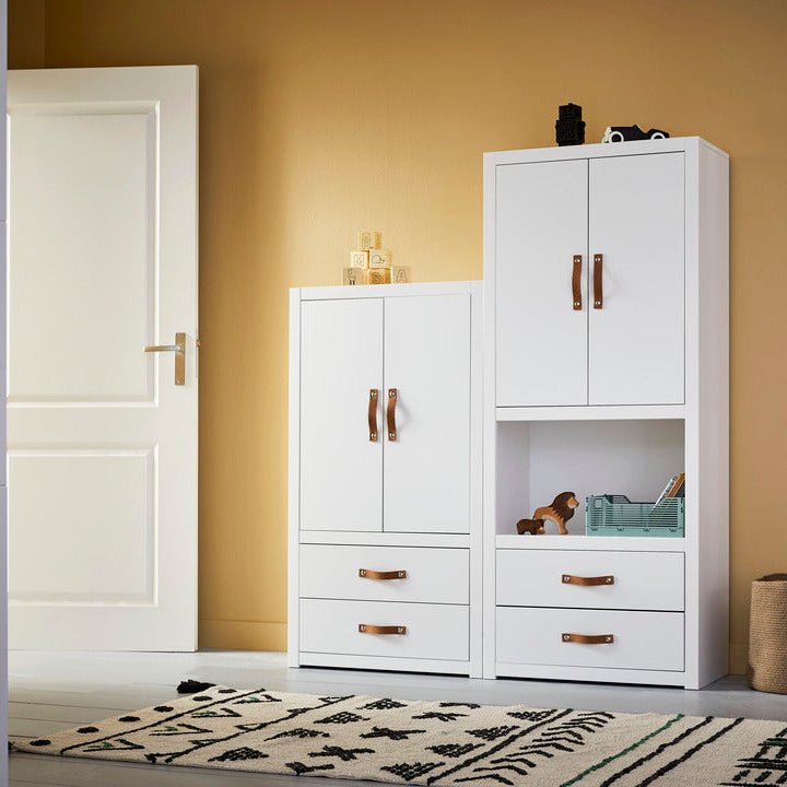 The white lacquered children's furniture from LIFETIME Kidsroom is made of solid pine wood without knots to avoid the typical discolouration and unevenness caused by knots. The surface is treated with environmentally friendly water-based white furniture lacquer and hardened with UV light, which ensures an easy-to-clean and resistant surface. For our white lacquered articles, we use MDF for fronts, fillings, doors and drawer fronts. Due to the use of different materials, there may be slight differences in colour and pattern.