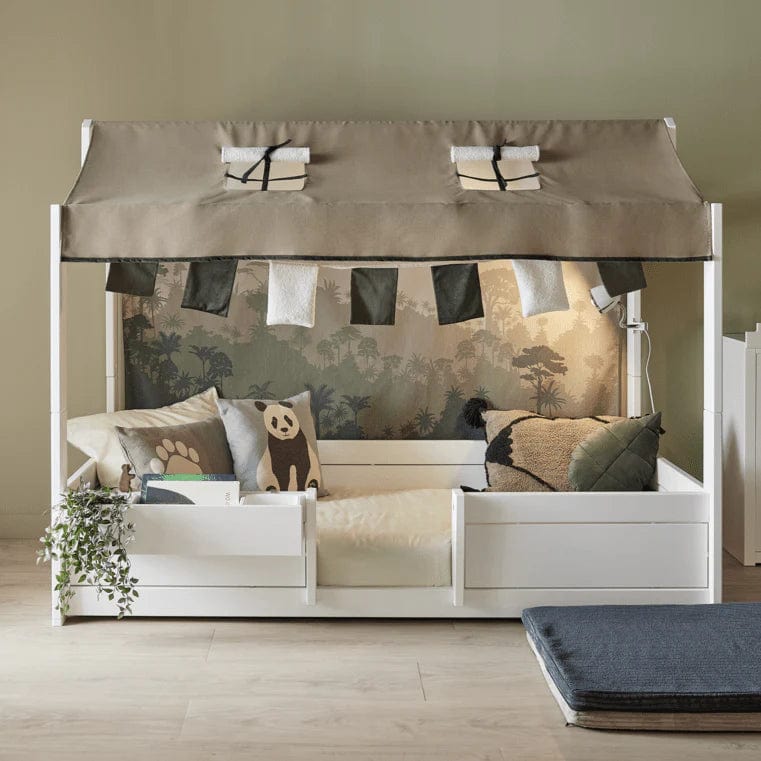 Create a cosy sleep and play universe with the fabric roof Panda Paradise. The fabric roof can be placed on the roof construction for the fabric roof, which is combinable with several basic bed combinations.