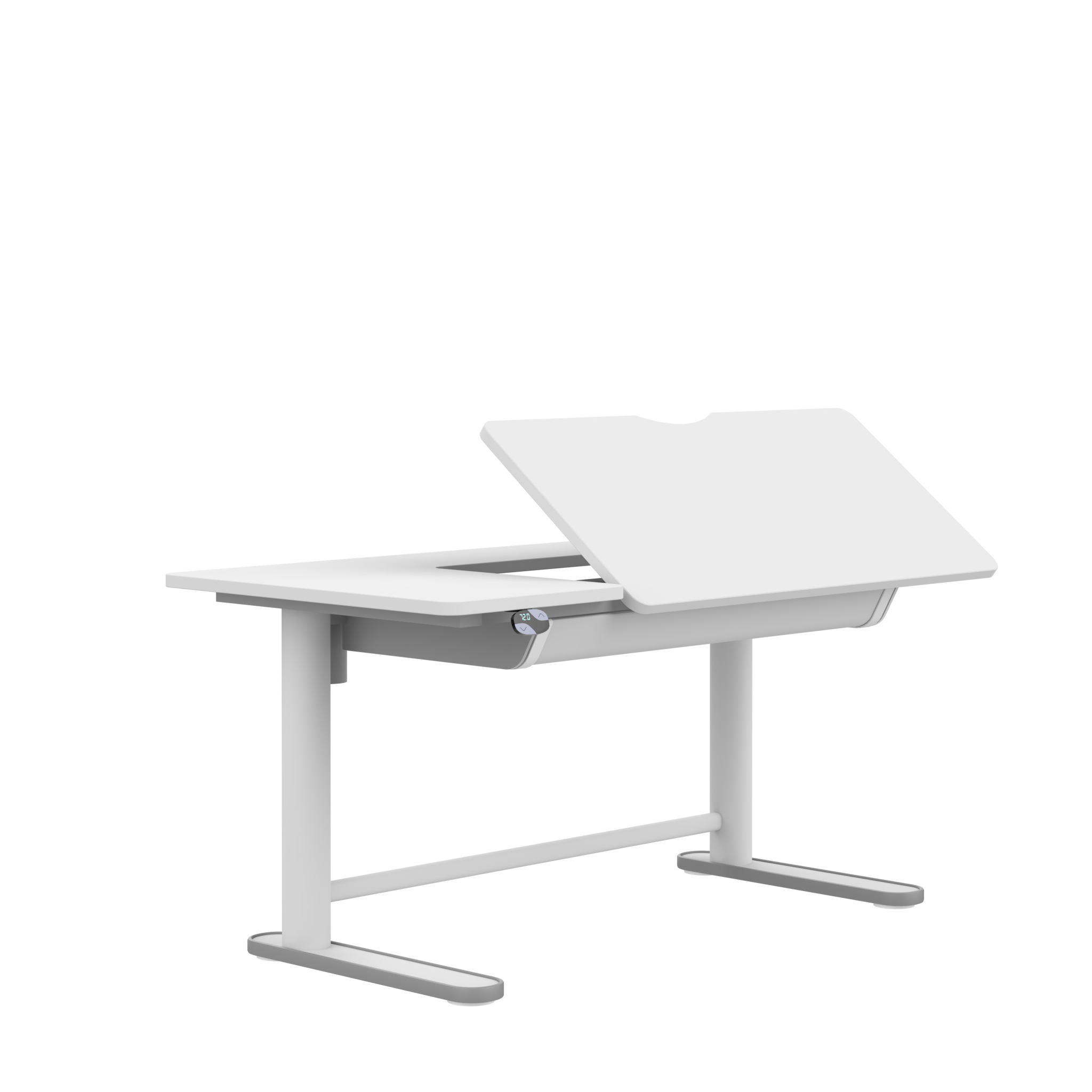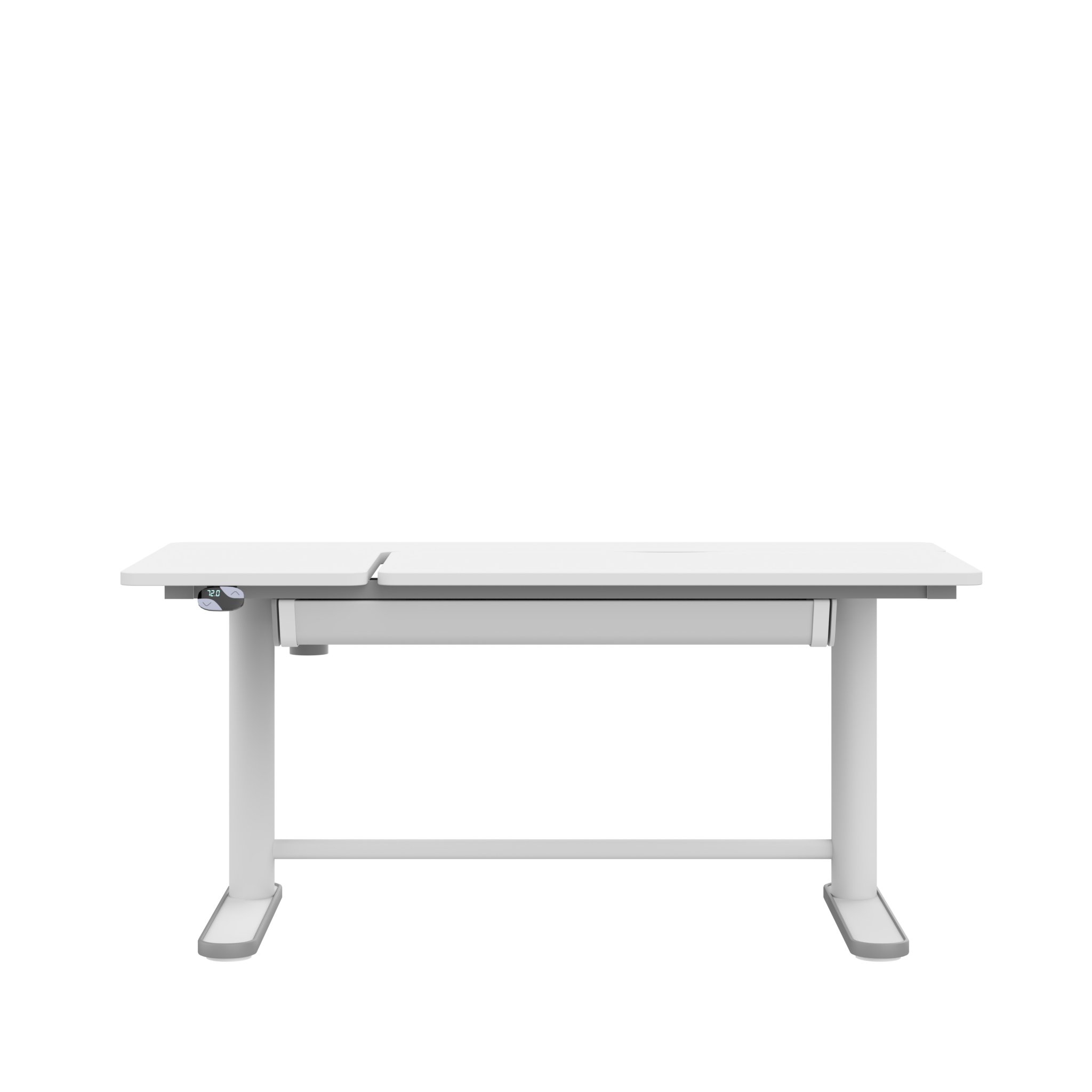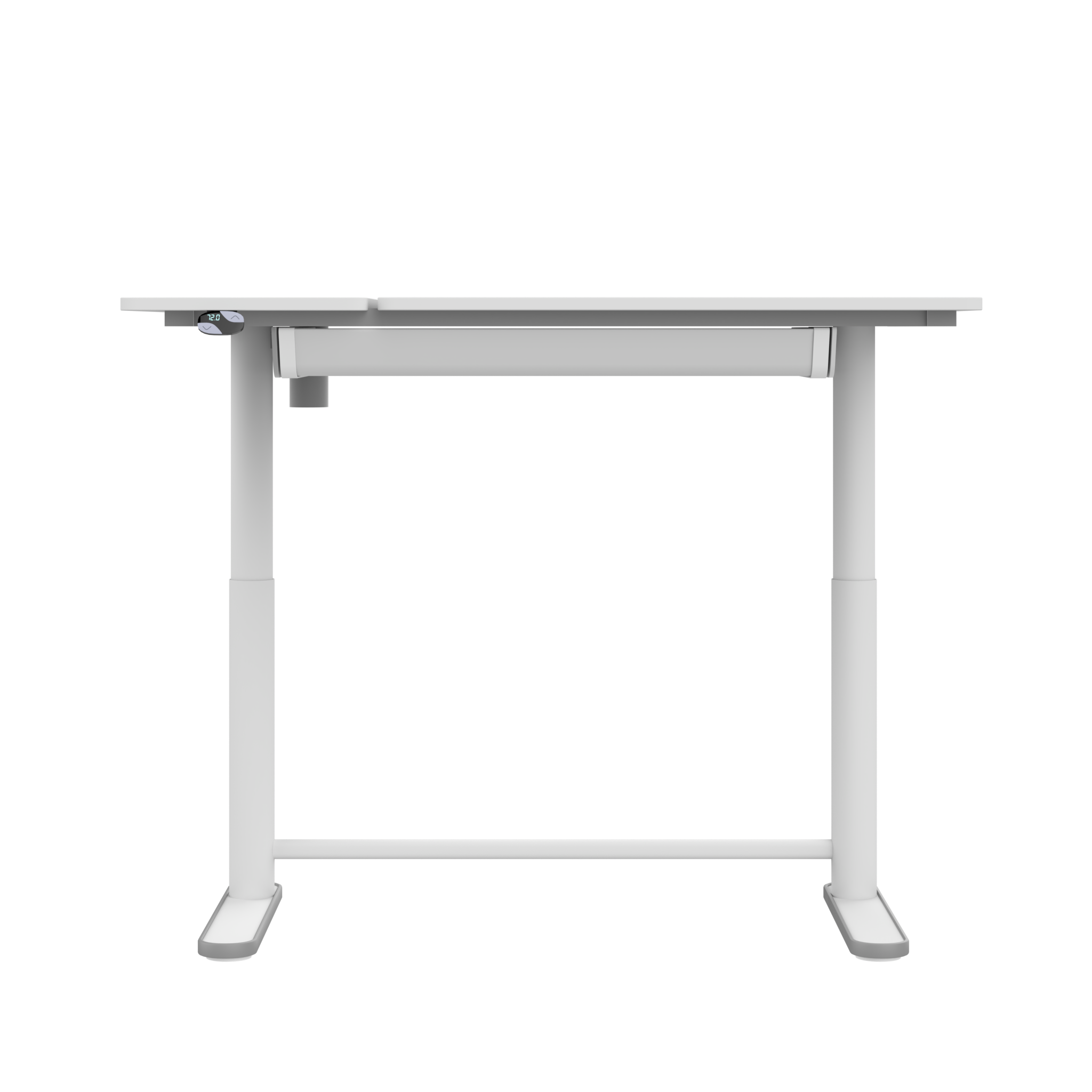The ERGO electric adjustable desk, featuring a right-side flip part, can be adjusted in height from 55 to 89 cm via a small button located below the desktop. The desktop surface measures 120x60 cm, can carry up to 40 kg and is made of durable chipboard, covered by melamine.