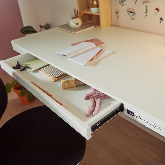 Our new electric adjustable desk is what every teenager dreams of. The height can be adjusted from 72 – 121 cm and is suitable as a desk or a standing desk.