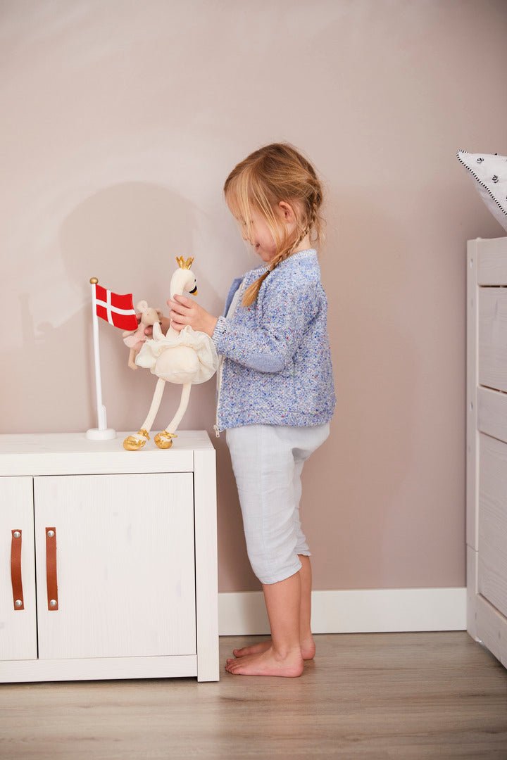 The white lacquered children's furniture from LIFETIME Kidsroom is made of solid pine wood without knots to avoid the typical discolouration and unevenness caused by knots. The surface is treated with environmentally friendly water-based white furniture lacquer and hardened with UV light, which ensures an easy-to-clean and resistant surface. For our white lacquered articles, we use MDF for fronts, fillings, doors and drawer fronts. Due to the use of different materials, there may be slight differences in colour and pattern.