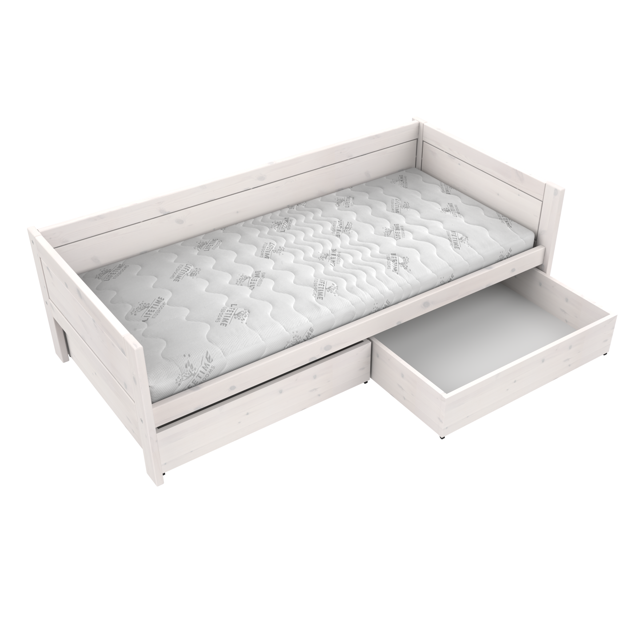 Onder het bed is een ideale opbergruimte, omdat deze ruimte anders niet gebruikt zal worden. Onder het LIFETIME bed is er ruimte voor 2 kleine bedladen.