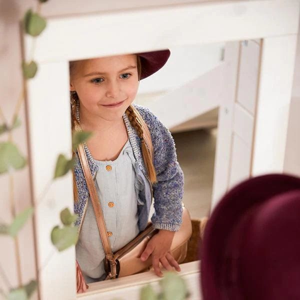 Een mooie spiegel, met een tijdloos ontwerp dat perfect in elke kinderkamer past. De spiegel is beschikbaar in de standaard meubelkleuren, zodat het bij je bed past.