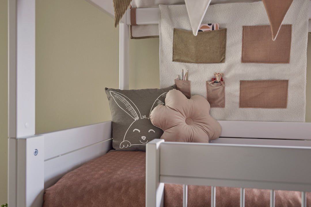 Het gevormde kussen Flower is gemaakt van superzacht velours en is een charmante bedaccessoire. Het kussen past perfect bij het Happy Rabbit-thema, maar ziet er ook geweldig uit op zichzelf.