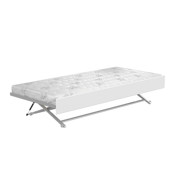 Wanneer het logeerbed niet meer nodig is, kan het moeiteloos weer onder het bed worden opgeborgen. Trek gewoon aan de band om het weer in te klappen.