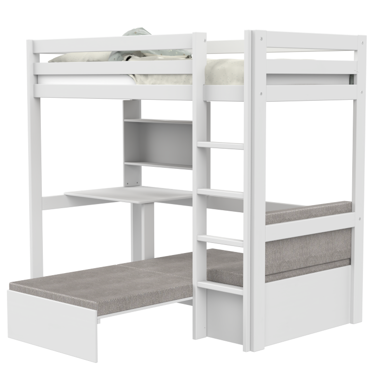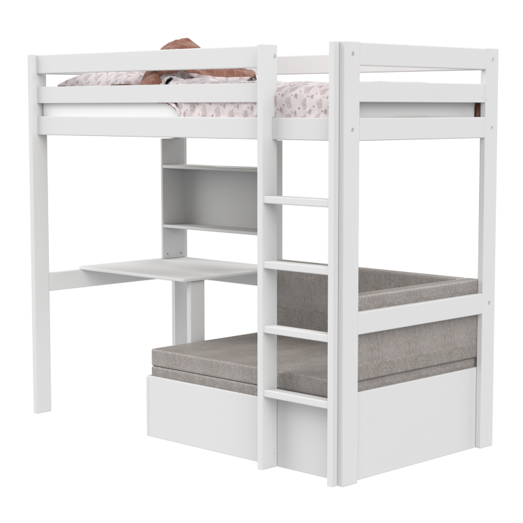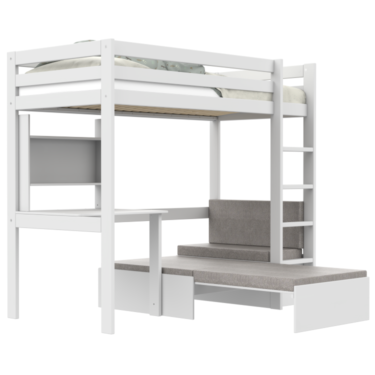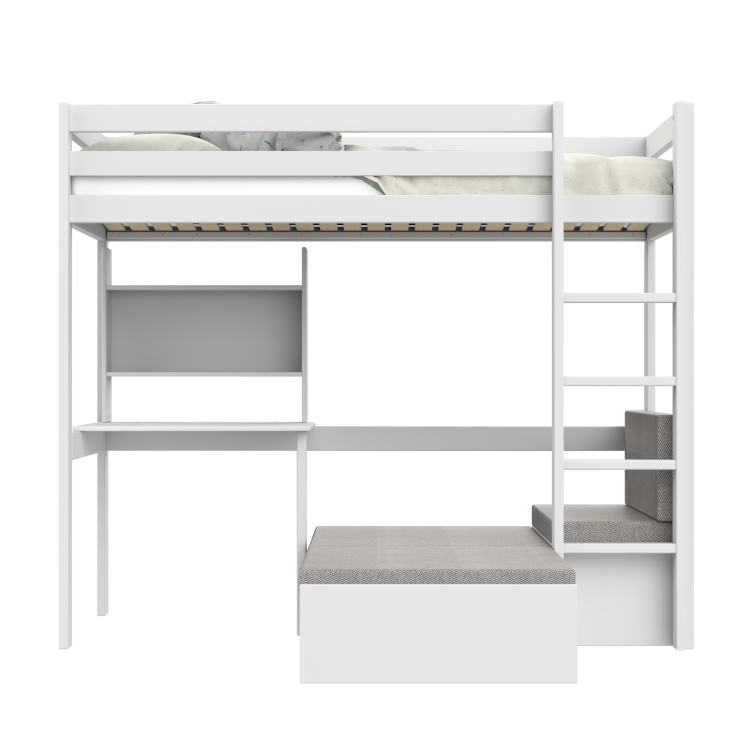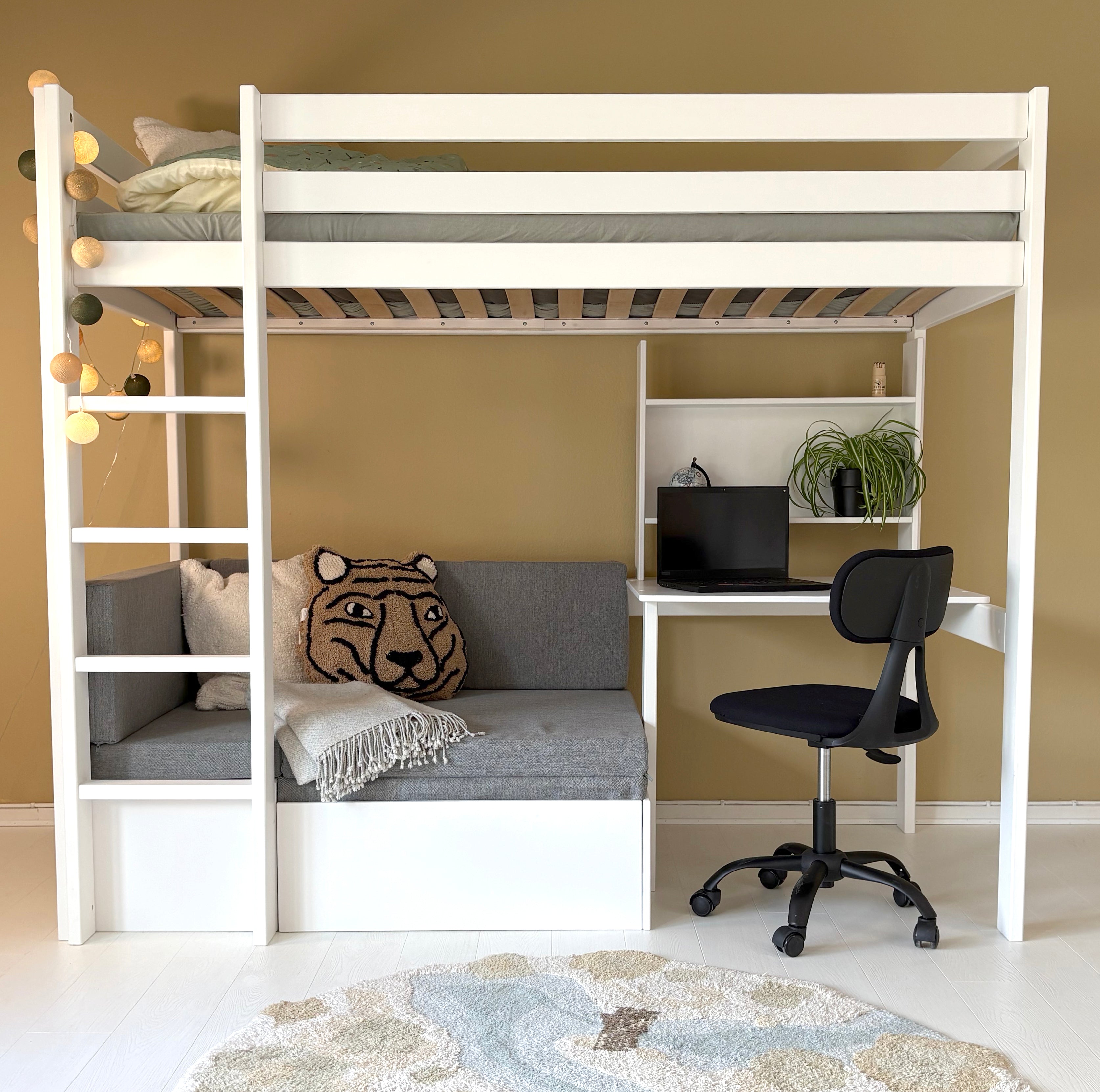 De Elements Hoogslaper 177 cm – Study & Relax biedt je kind een alles-in-één oplossing voor comfort, plezier en functionaliteit. Hij combineert een gezellige slaapruimte met een geïntegreerd bureau voor studie of hobby's, plus een uitschuifbare slaapbank die perfect is voor gasten en logeerpartijtjes.