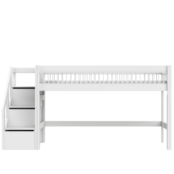 De trap kan aan zowel de linker- als de rechterkant van het bed worden geplaatst, waardoor je meer opties hebt bij het inrichten van de kinderkamer.