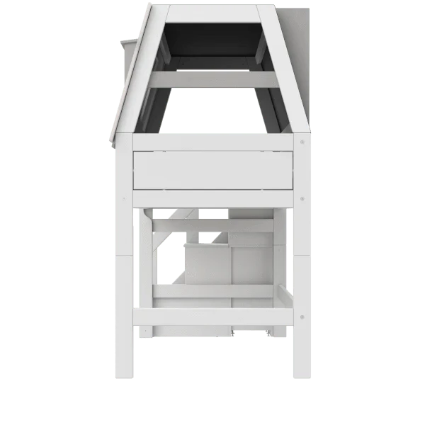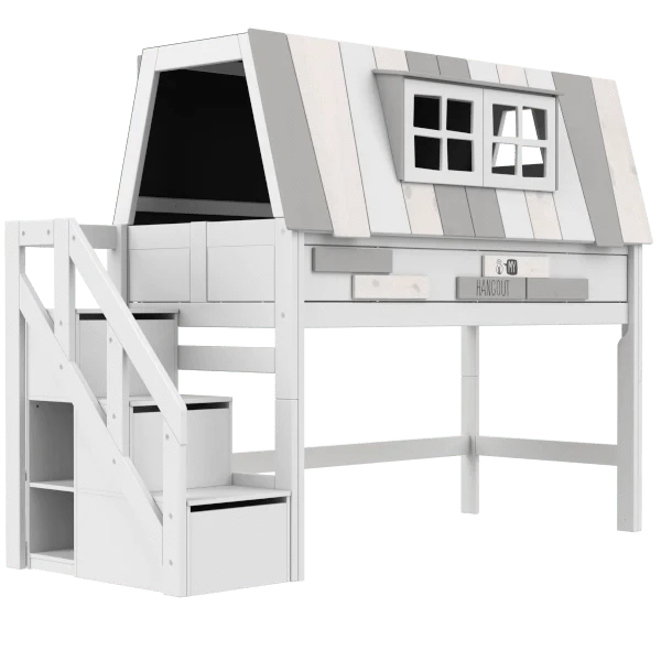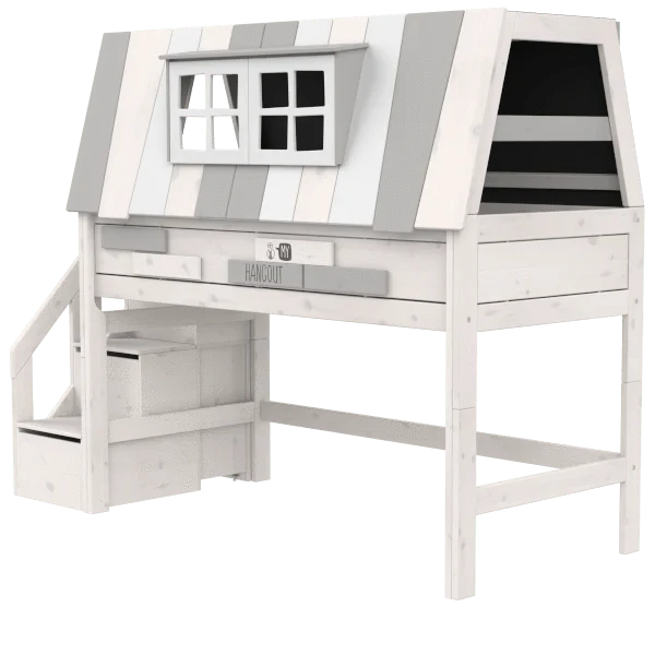 Deze 128 cm hoge My Hangout halfhoogslaper vergroot de ruimte in de kinderkamer, omdat de vierkante meters onder het bed nu kunnen worden gebruikt als speelruimte, studieruimte of logeerbed. De trap is niet alleen een veilige aanvulling op het bed, maar kan ook worden gebruikt voor opslag, aangezien elke trede kan worden geopend om als kleine kasten te fungeren.