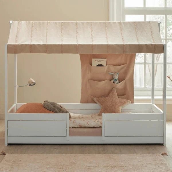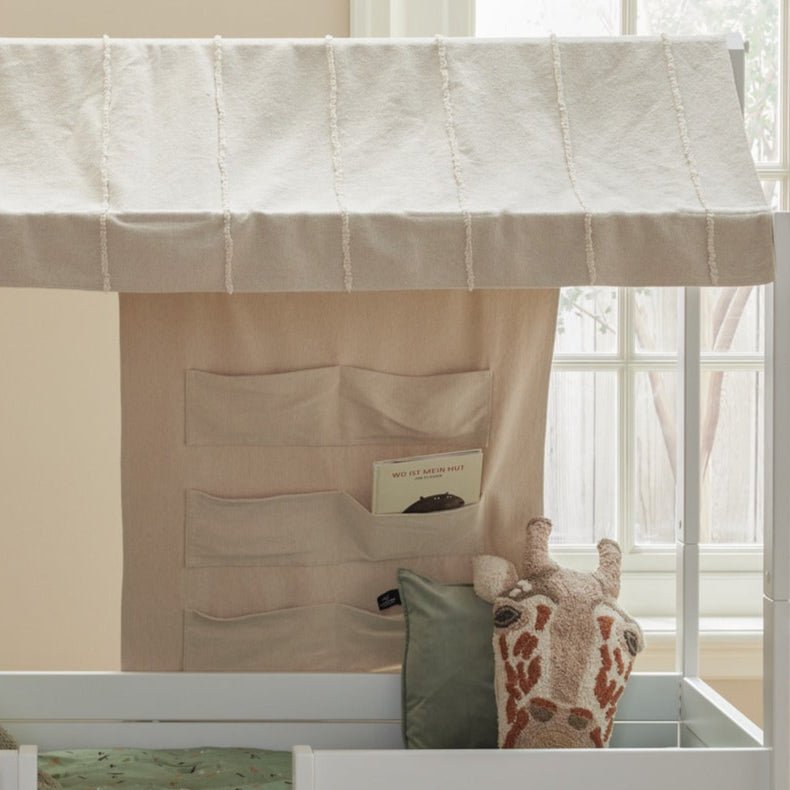 Bewaar je spullen in deze mooie bedzak hanger van LIFETIME Kidsrooms. De zak hanger kan aan de bovenrand van het bed worden gehangen, zodat de opslag gemakkelijk toegankelijk is voor jou of je kind. Gemakkelijke en handige opslag in bed zonder ruimte in het bed in te nemen.