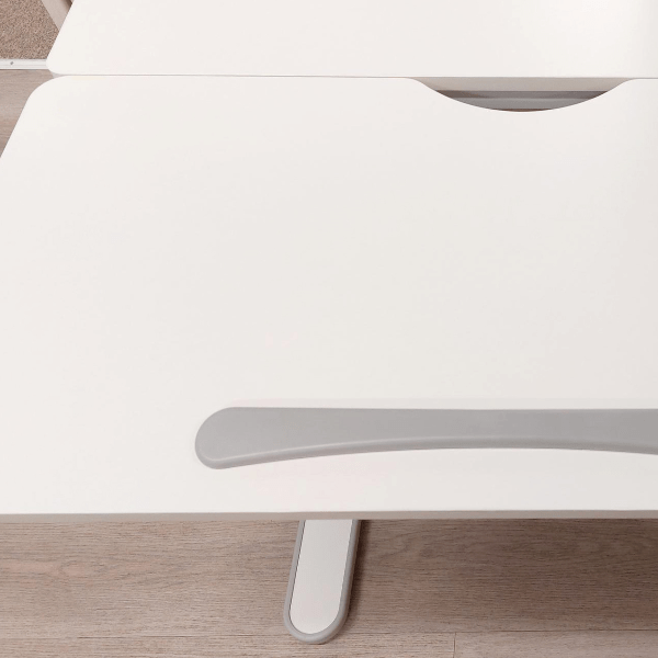 The paper holder in grey is designed for LIFETIME Kidsroom's ERGO height adjustable desk right and left. Simply stick it on with the included 3M tape. This makes it easy for the child to keep books or iPads upright on the desk.