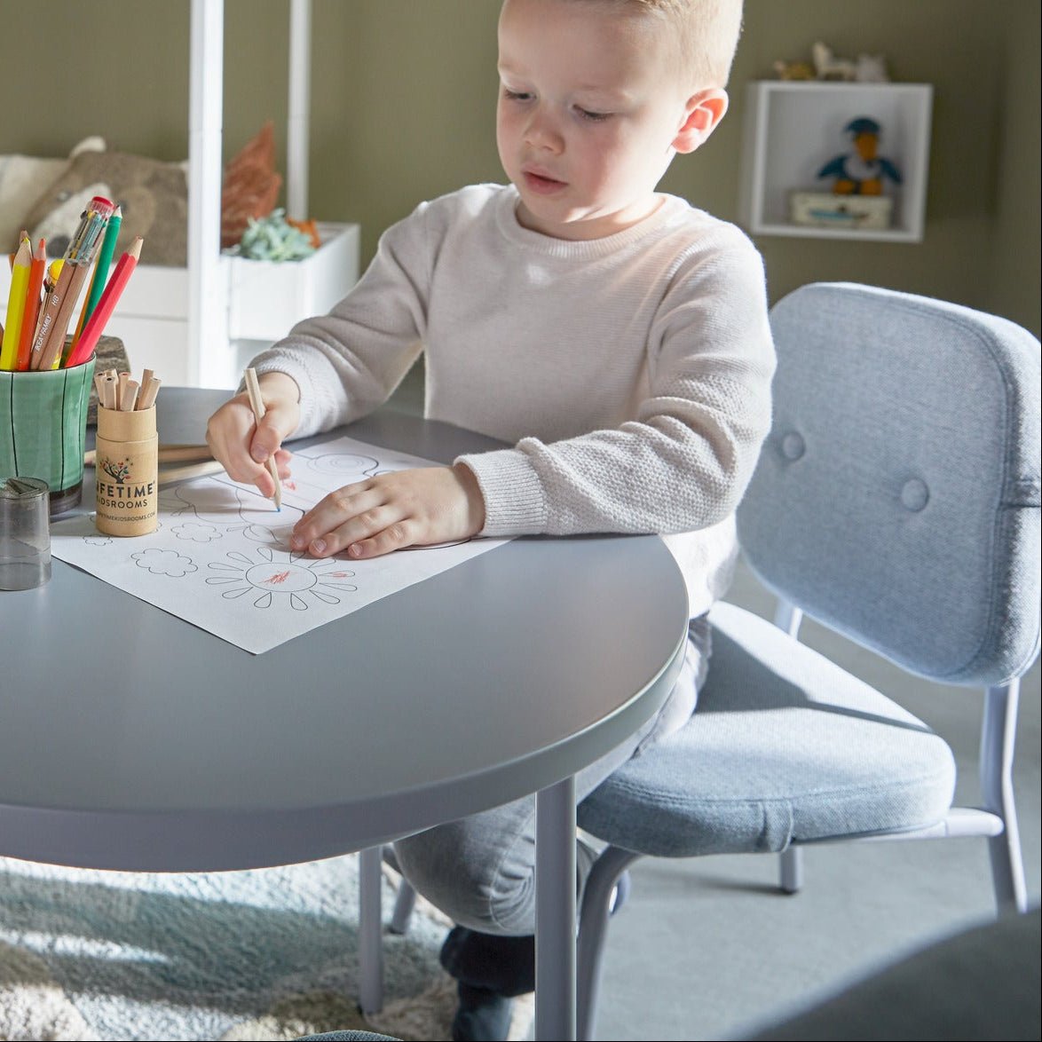 The CHILL Collection by LIFETIME Kidsrooms offers playful furniture that creates the perfect setting for fun and creativity in your child’s room. With a small table and chairs designed for little ones, it’s ideal for tea parties, drawing, or other imaginative activities. The chair, bench and stool are available in 4 colours.